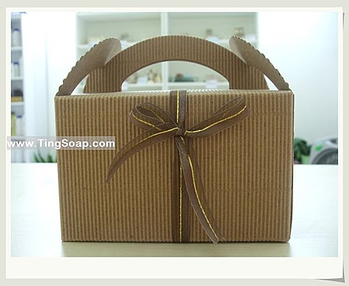 此款瓦楞紙禮盒,可裝入5-8顆手工皂,送禮大方又環保哦~