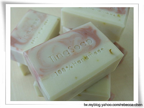 這也是冷製基礎皂課程上示範的洗顏皂,入模時,教大家回鍋渲染的方式入模,讓皂不只有單一色彩,更學了什麼叫回鍋渲染,下層是另一堂冷製基礎課上的金盞溫和皂,二堂課的皂,加在一起,真是方便啊~~