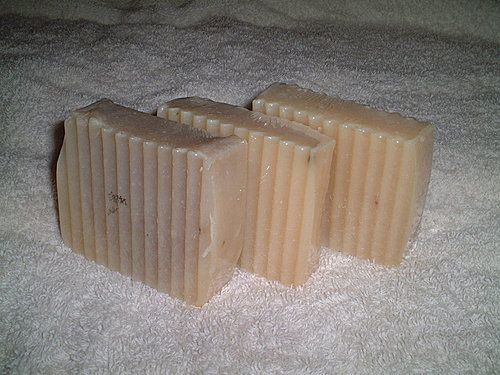 這款皂用了迷迭香浸泡油去做,泡了二個多月,拿來做皂,有點卡其色,顏色我還蠻喜歡的~